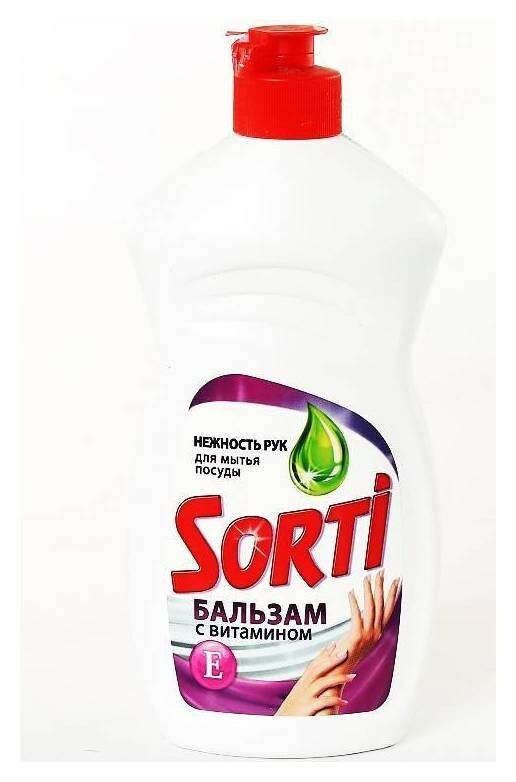 Средство для мытья посуды Sorti Бальзам с витамином Е отлично пенится и легко смывается водой, не оставляет разводов и придает посуде зеркальный блеск. Средство обладает густой формулой и не только эффективно борется с загрязнениями, но и бережно относится к коже рук.