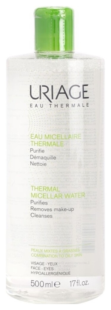 Uriage 500 мл. Мицеллярная вода для лица и кожи вокруг глаз жирной и комбинированной кожи очищающая Thermal Micellar Water