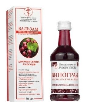 Бальзам из сока винограда и экстрактов трав Кавказа – это натуральный продукт для здоровья вашего сердца и сосудов. Сок винограда ценится за свои омолаживающие свойства, может улучшать кровообращение и метаболизм в стенках сосудов. Комплекс боярышника и шиповника направлен на нормализацию уровня холестерина в крови, препятствуя развитию атеросклероза и тромбоза. Композиция мяты и пустырника поможет понизить давление, успокоить нервную систему, повысить функциональную активность ЦНС. Экстракт календулы тонизирует сосуды, устраняет спазмы и активизирует кровоток в мозге.