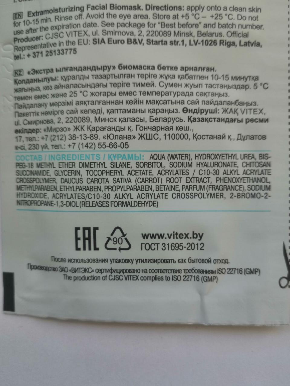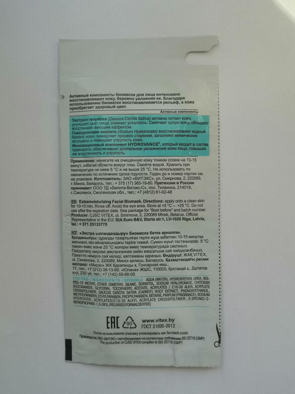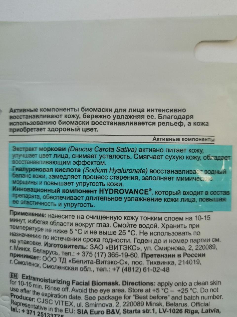 на Биомаска для лица Экстраувлажнение Белита - Витекс