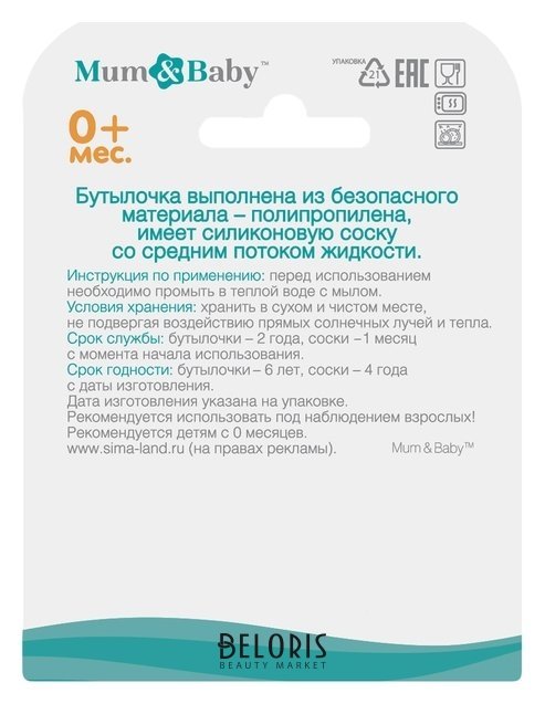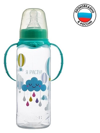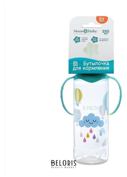Отзывы на Бутылочка для кормления «Нежное облачно» детская классическая, с ручками, 250 мл, от 0 мес., цвет бирюзовый Mum&baby