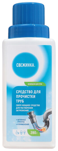Очиститель труб быстро и надолго избавит Вас от проблем с засорами. Благодаря активным химическим процессам средство очень эффективно устраняет любые, даже самые трудные, засоры в стоках и трубах, устраняя при этом неприятный запах.