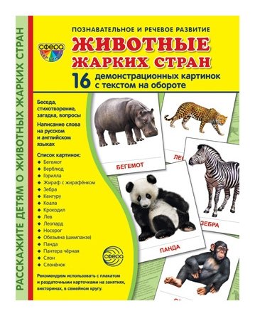 Отзывы на Демонстрационные картинки Животные жарких стран 16 карточек с текстом Учебно-методическое пособие с комплектом демонстрационного материала познавательное и речевое развитие Издательство сфера