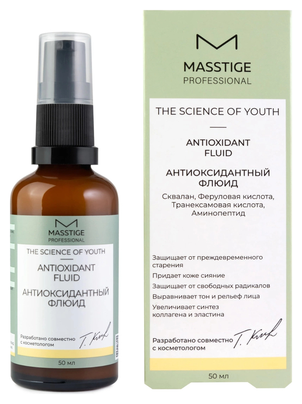 Флюид Masstige The Science Of Youth Антиоксидантный – инновационное средство для интенсивного антивозрастного ухода и защиты кожи от вредного воздействия свободных радикалов.