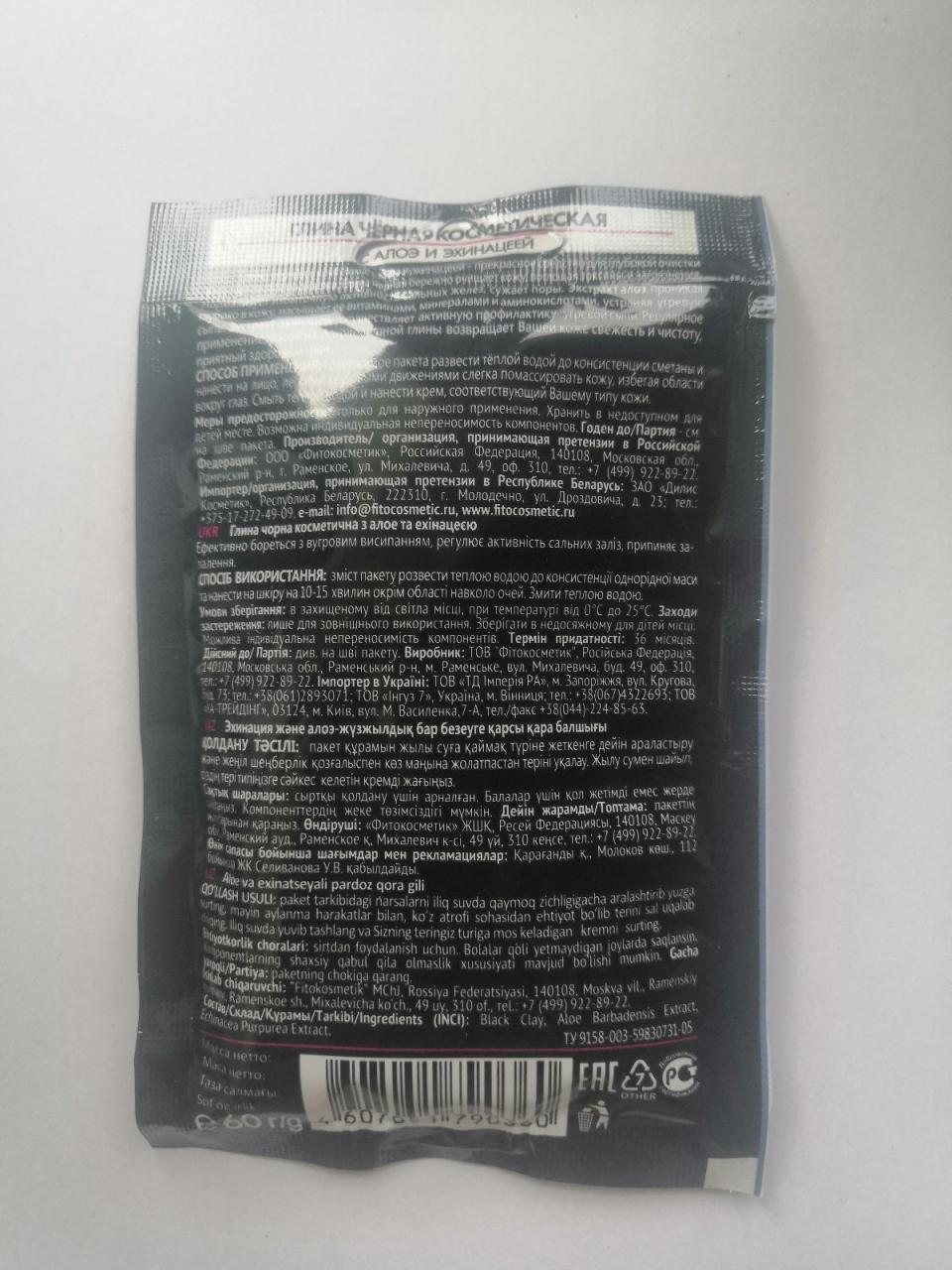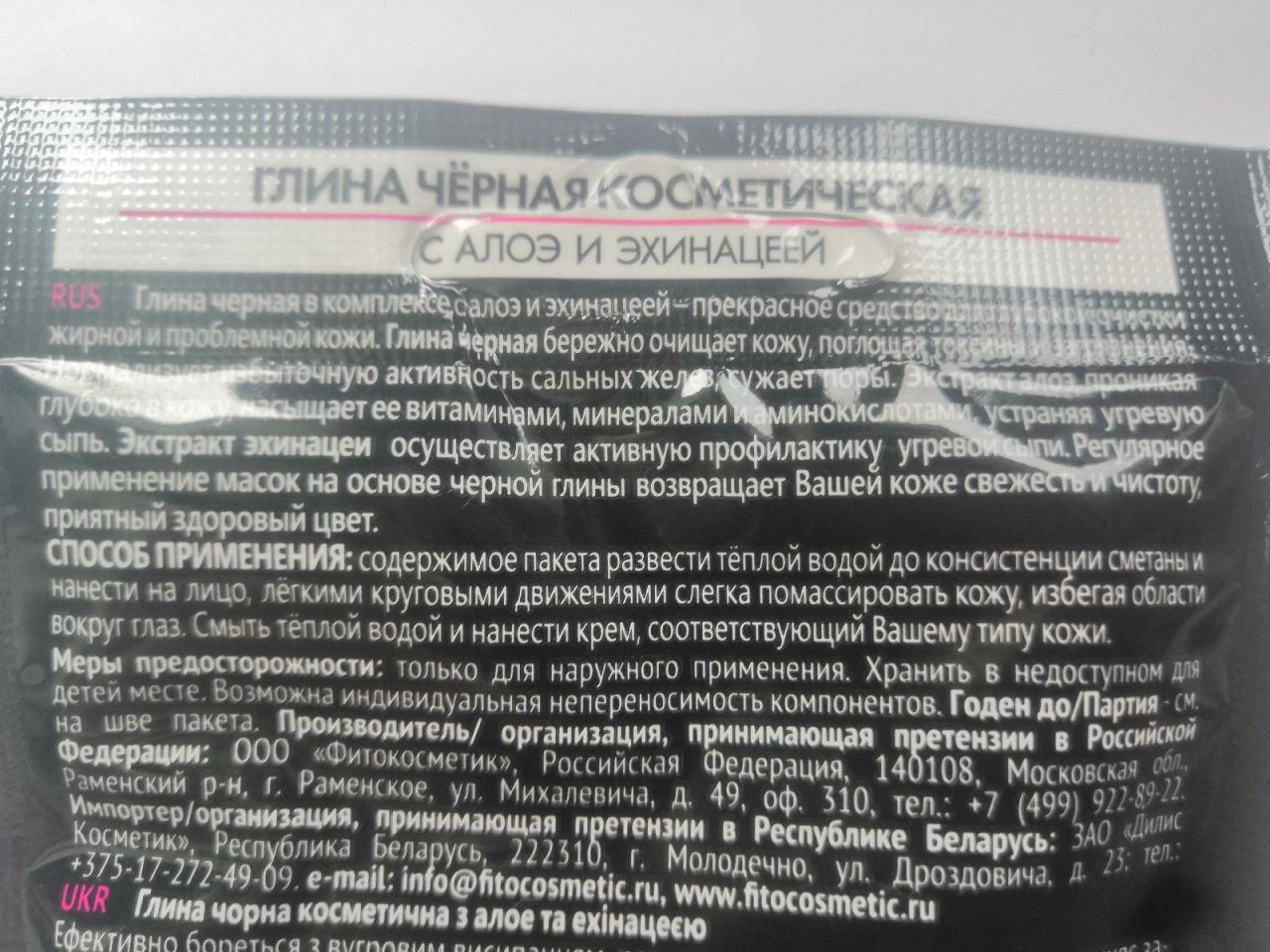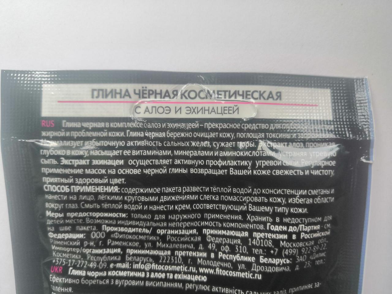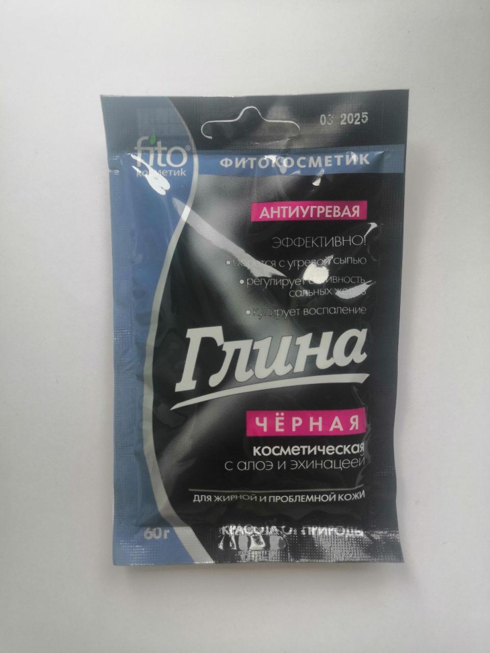 Отзывы на Глина черная косметическая антиугревая с алоэ и эхинацеей Фитокосметик