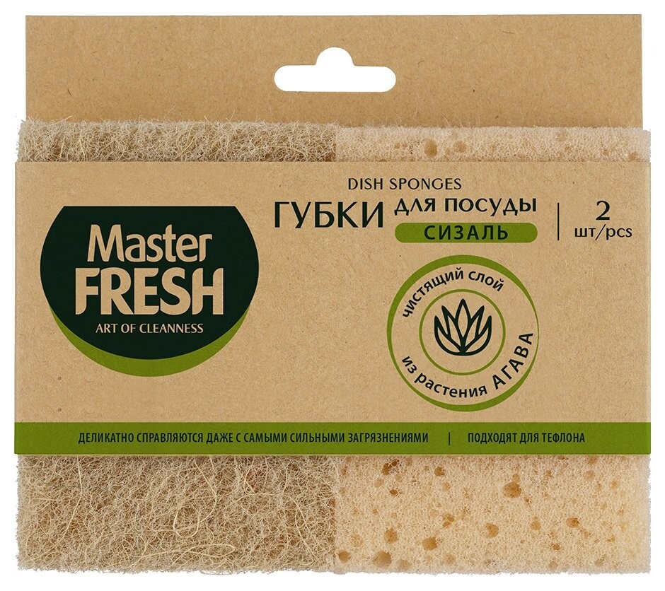 Отзывы на Губка для мытья посуды Master Fresh ЭКО из агавы Xxl-размер крупнопористый поролон, 2 шт Master FRESH