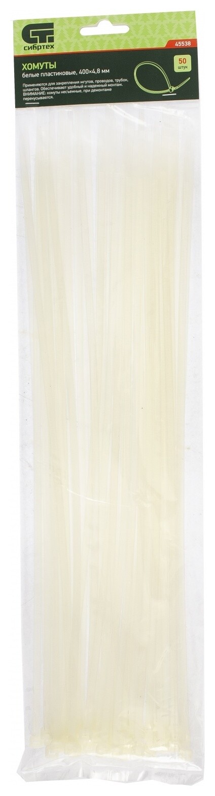 Отзывы на Хомуты, 400 X 4.8 мм, пластиковые, белые, 50 шт Сибртех