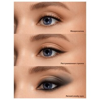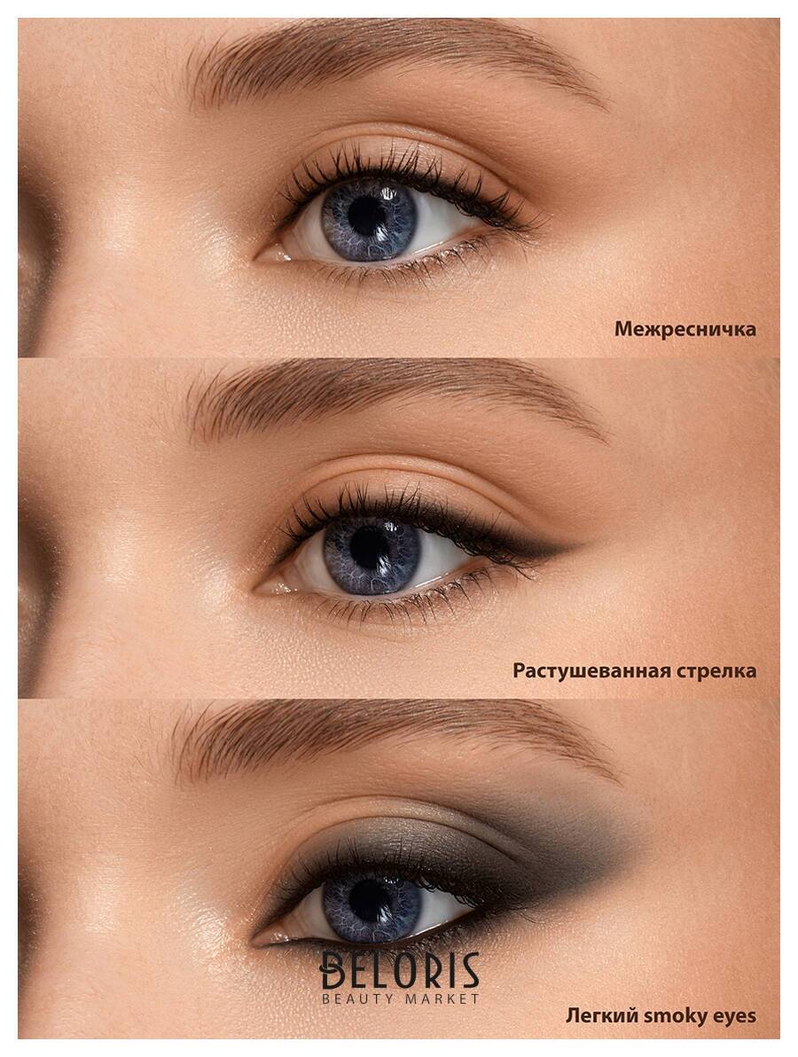 Благодаря высокой пигментации и мягкой гелевой текстуре карандаш-каял позволяет подчеркнуть линию роста ресниц глубоким насыщенным цветом, прорисовать яркие выразительные стрелки.