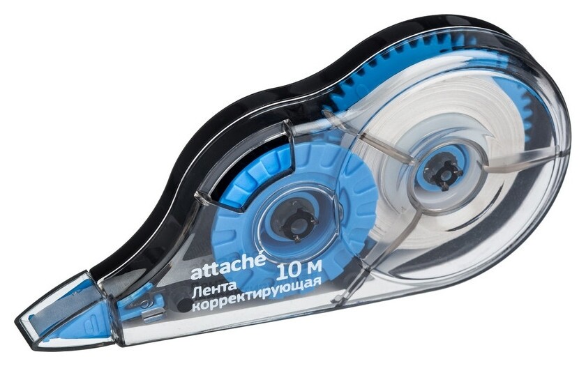 Корректирующая лента Attache Economy предназначена для исправления текста на любом типе бумаги. Не требует длительного высыхания, можно сразу писать по исправленному тексту. Прозрачный корпус позволяет контролировать расход ленты, а съемный колпачок защищает её от высыхания. Имеет функцию подкручивания. Лента не оставляет следов и черных полос на документе при ксерокопировании или отправке по факсу. Общая длина корректирующей ленты - 10 м, ширина - 5 мм. Упаковка - полипропиленовый пакет с европодвесом. Внимание! Товар поставляется в нескольких вариантах цвета/дизайна (без возможности выбора).