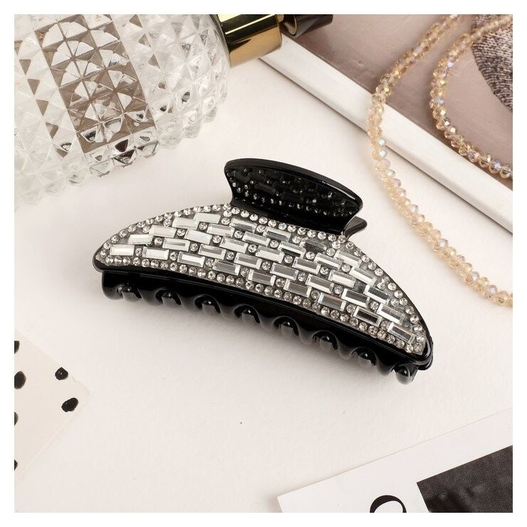 на Краб для волос "Галатея" 8,5 см, прямоугольные стразы, чёрный NNB