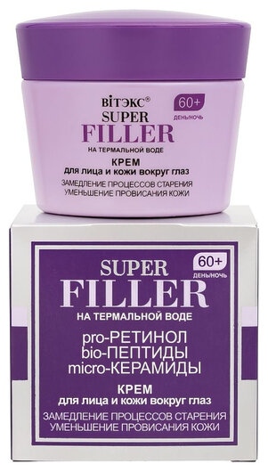 Белита - Витекс Крем для лица и кожи вокруг глаз Super Filler на термальной воде 60+ Замедление процессов старения и уменьшение провисания кожи 60+, день/ночь Белорусская косметика