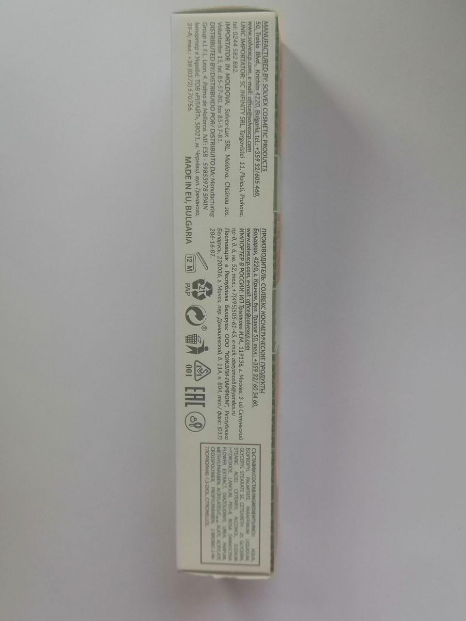 На упаковке присутствует вся необходимая информация о креме: состав, срок годности, способ применения.