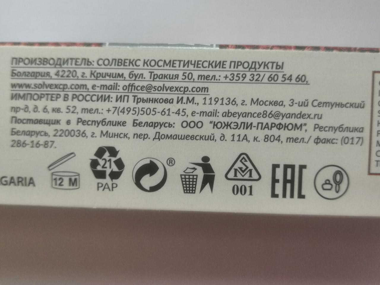Продаётся крем в обычной картонной коробочке. Оформление упаковки простое и симпатичное. Так как в составе заявлен экстракт розы на коробочке и на тюбике есть изображение этого цветка. Также в составе есть глицерин, консерванты, отдушка.
