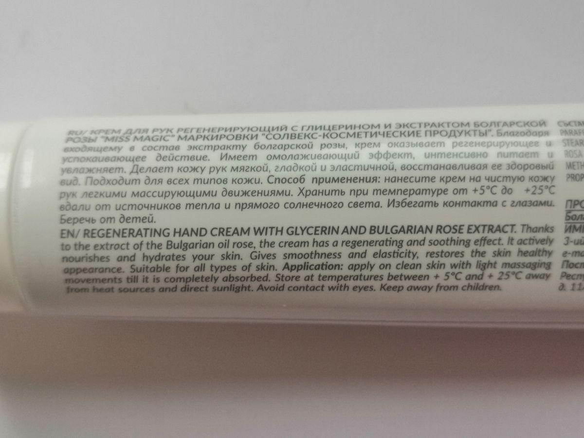на Крем для рук регенерирующий с глицерином и экстрактом болгарской розы Miss Magic