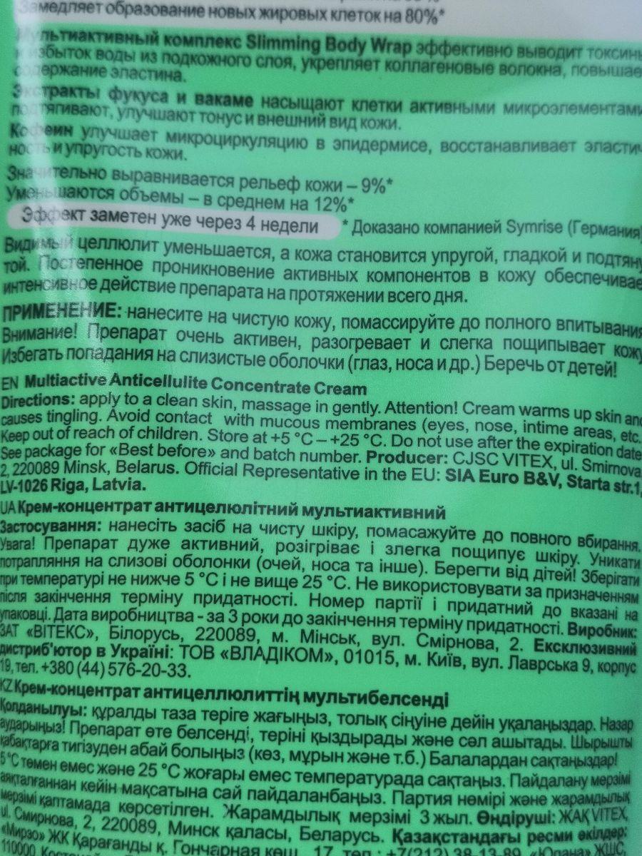 Высококонцентрированная формула крема обеспечивает мощный антицеллюлитный эффект, позволяя добиться впечатляющих результатов в борьбе даже с запущенным целлюлитом.