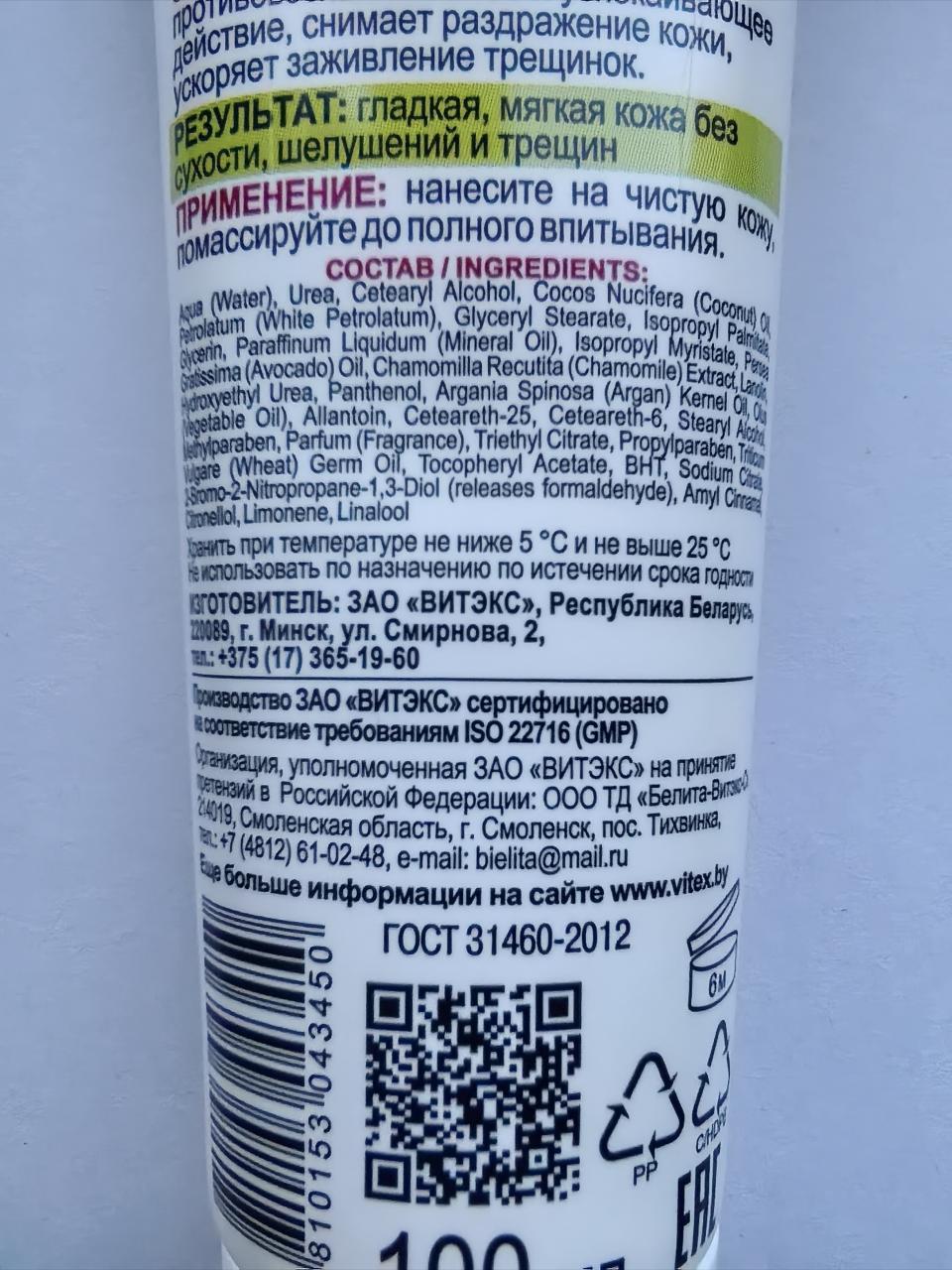 Отзывы на Крем-масло для ног от сухости, трещин, мозолей, натоптышей, Авокадо & аргана Белита - Витекс