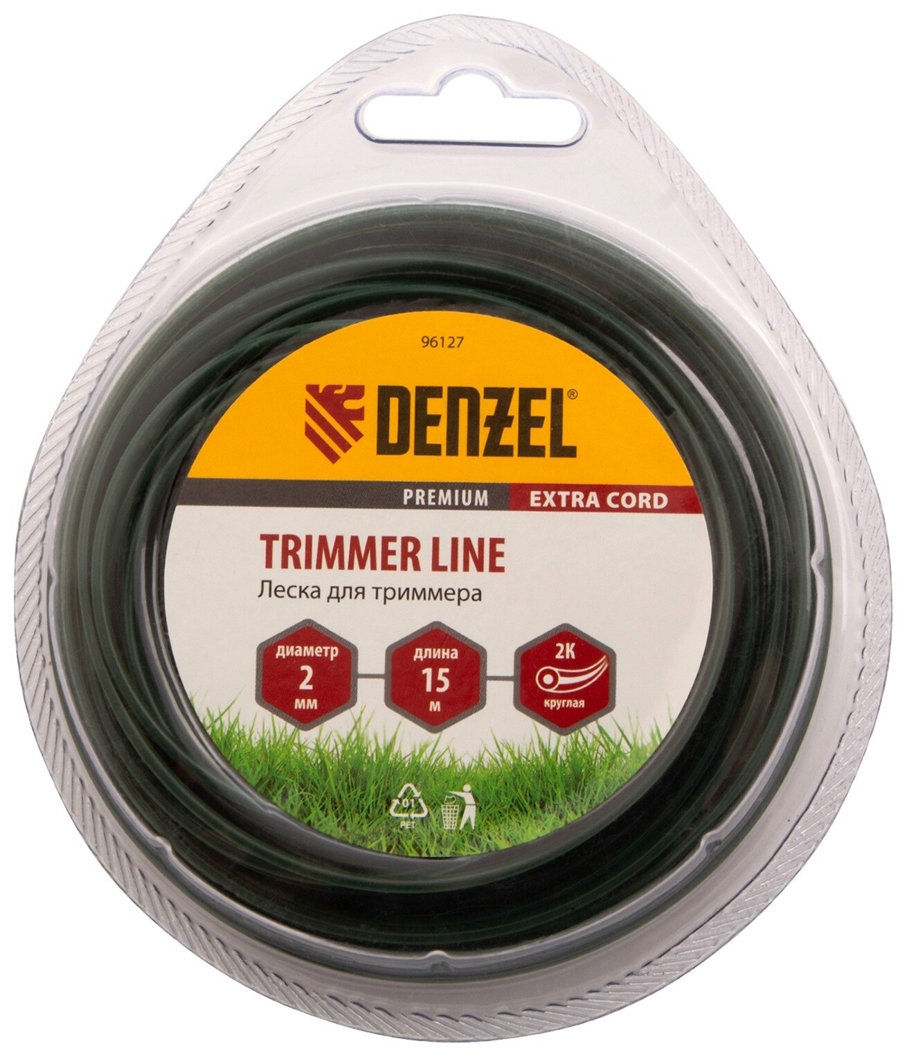 Леска Denzel EXTRA CORD 2,0 мм х 15 м подходит к бензиновым триммерам высокой мощности. Имеет круглое сечение и ширину 2 мм, поэтому подходит для покоса как молодой, так и сухой травы, молодой поросли малины и других кустарников, бурьяна.