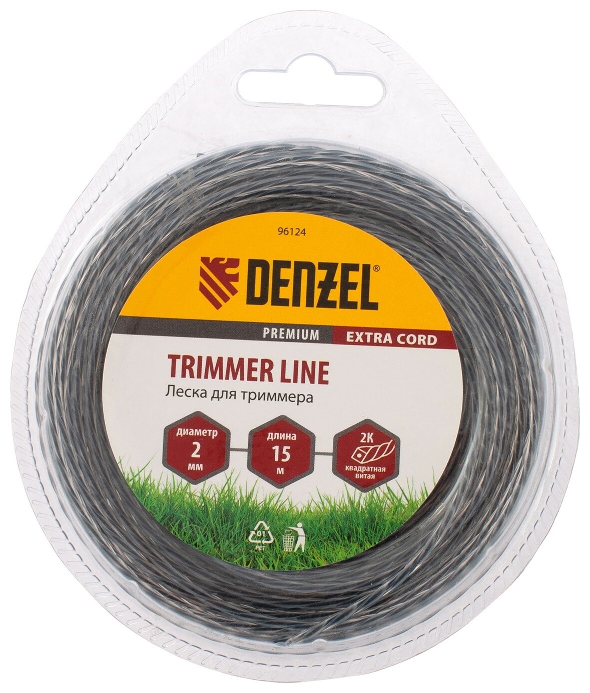 Отзывы на Леска для триммера, двухкомпонентная квадрат 2 мм, 15 м Extra Cord Denzel