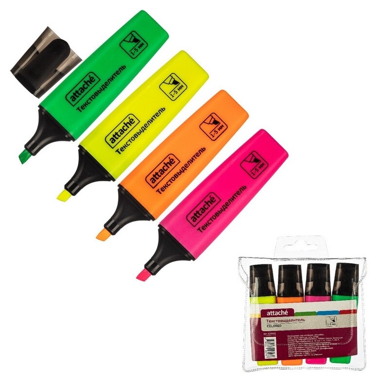 Отзывы на Маркер выделитель текста Attache Colored 1-5мм набор 4цв. Attache