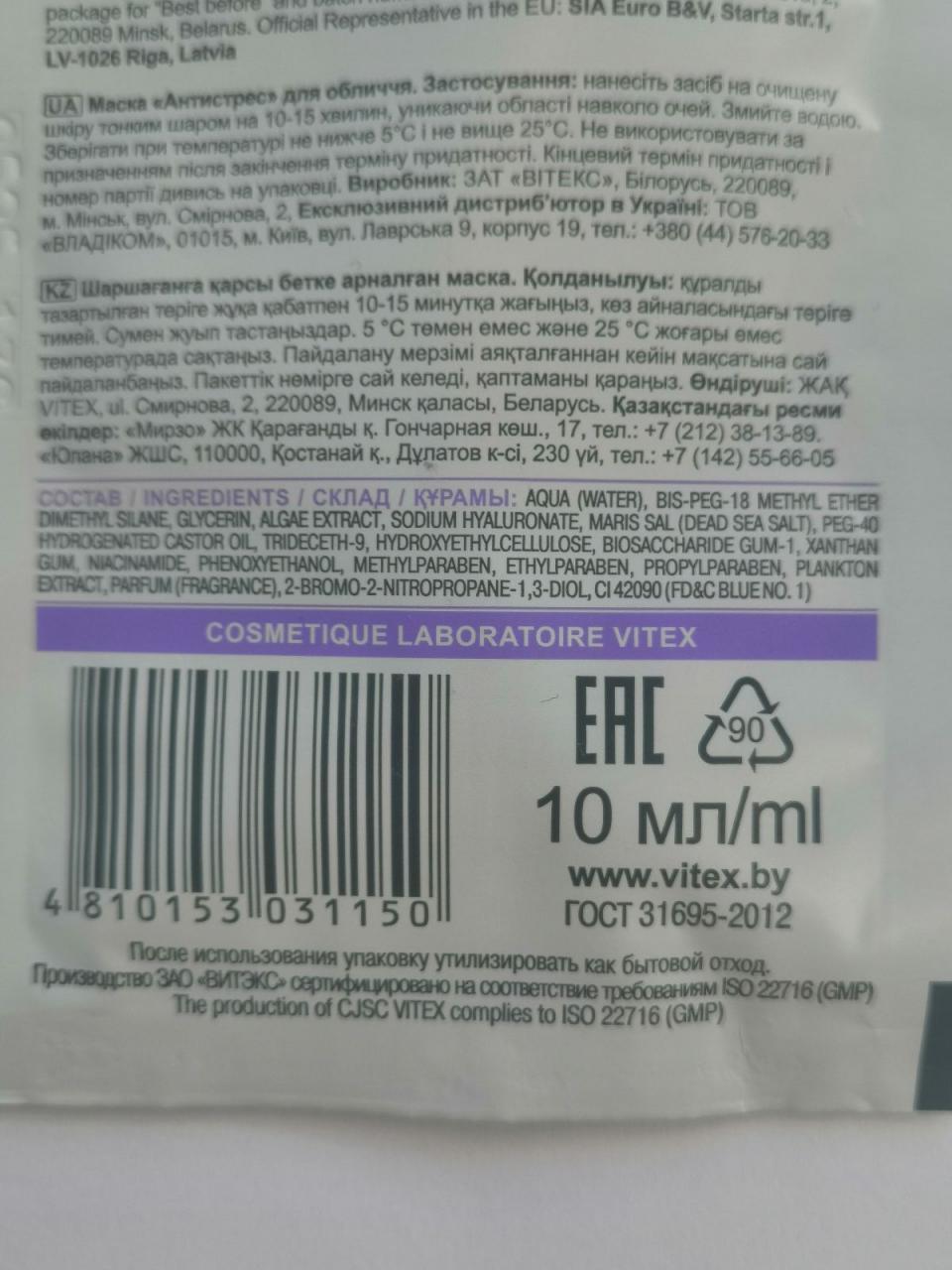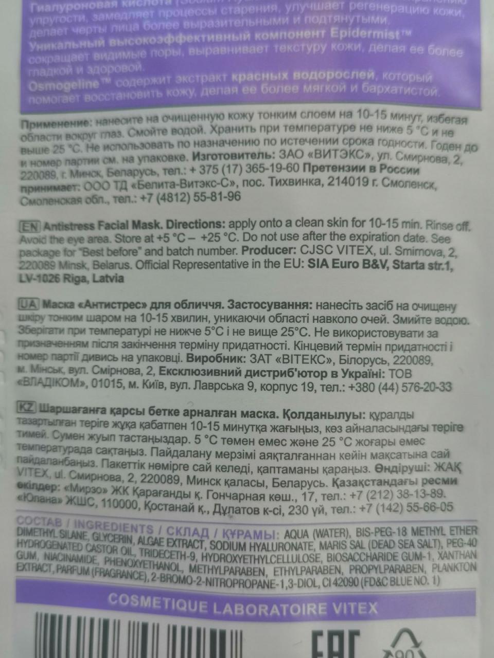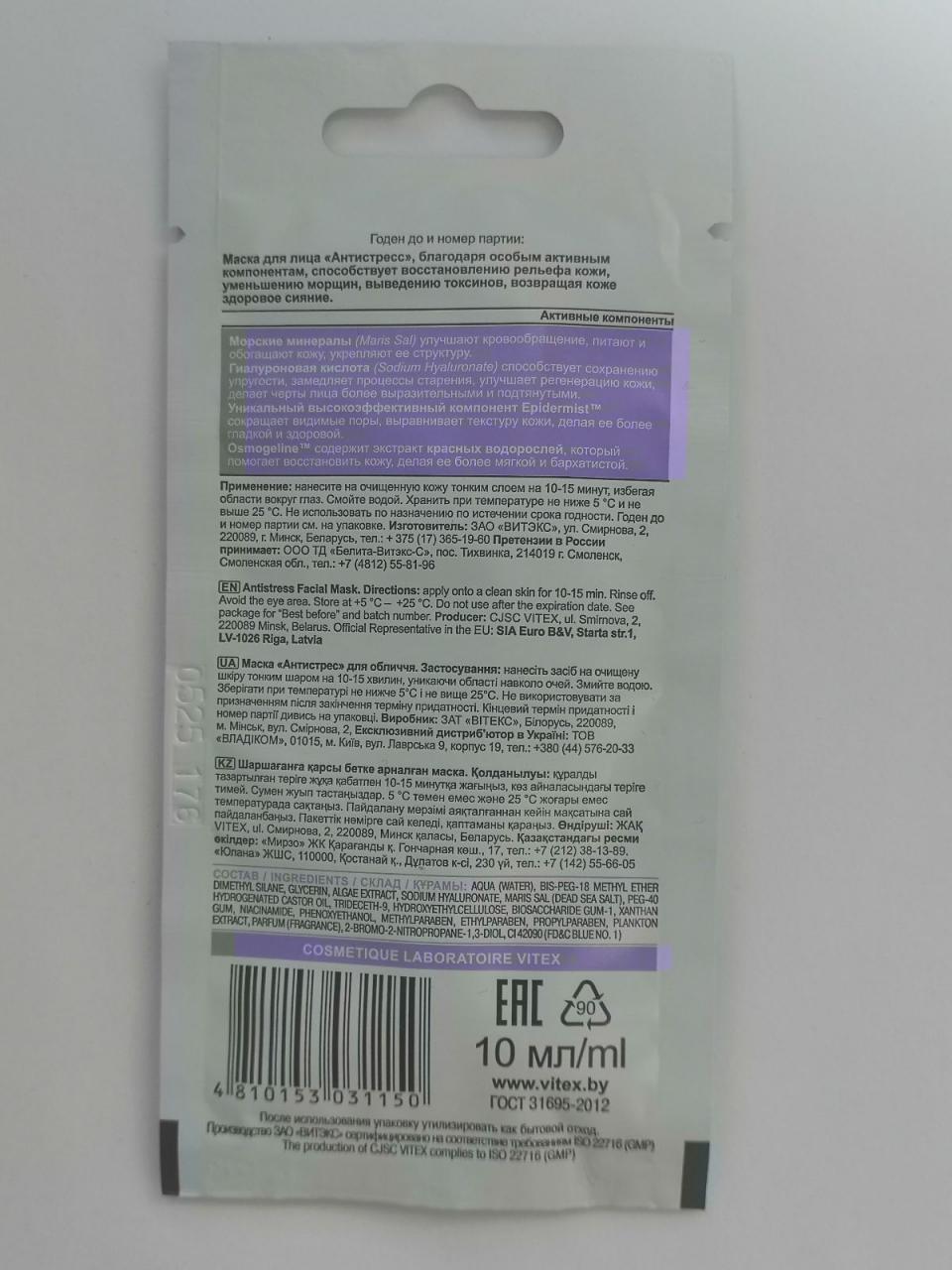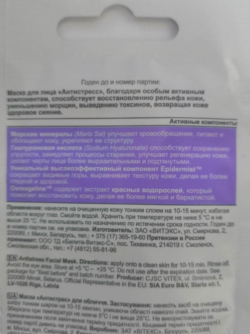 Отзывы на Маска для лица Антистресс Белита - Витекс