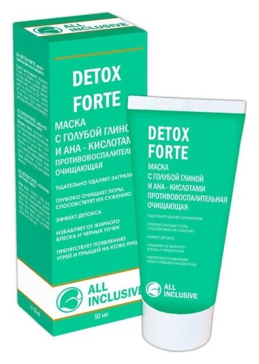 Отзывы на Маска для лица с голубой глиной и АНА-кислотами противовоспалительная очищающая Detox Forte All Inclusive