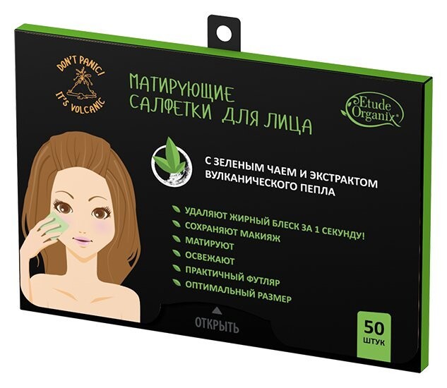 Отзывы на Матирующие салфетки для лица с зеленым чаем и экстрактом вулканического пепла Etude Organix