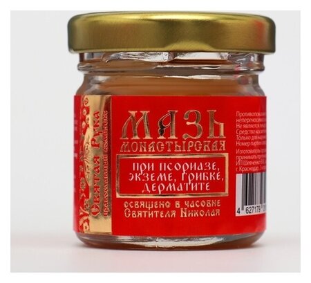 Мазь при псориазе, экземе, грибке, дерматите, стекло, Святая Рука
