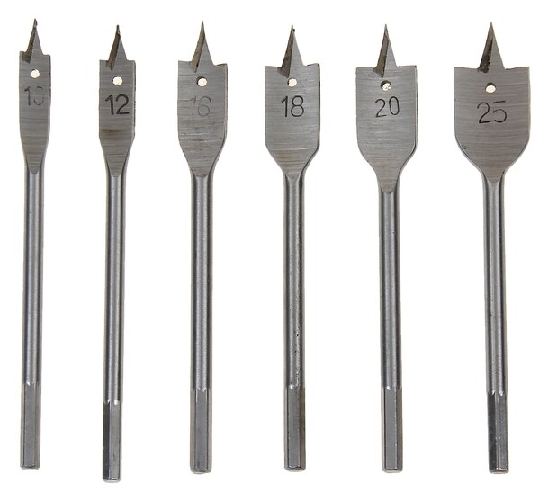 Набор сверл перовых Sparta, по дереву, 10-12-16-18-20-25 мм, 6 шт, 6-гранный хвостовик