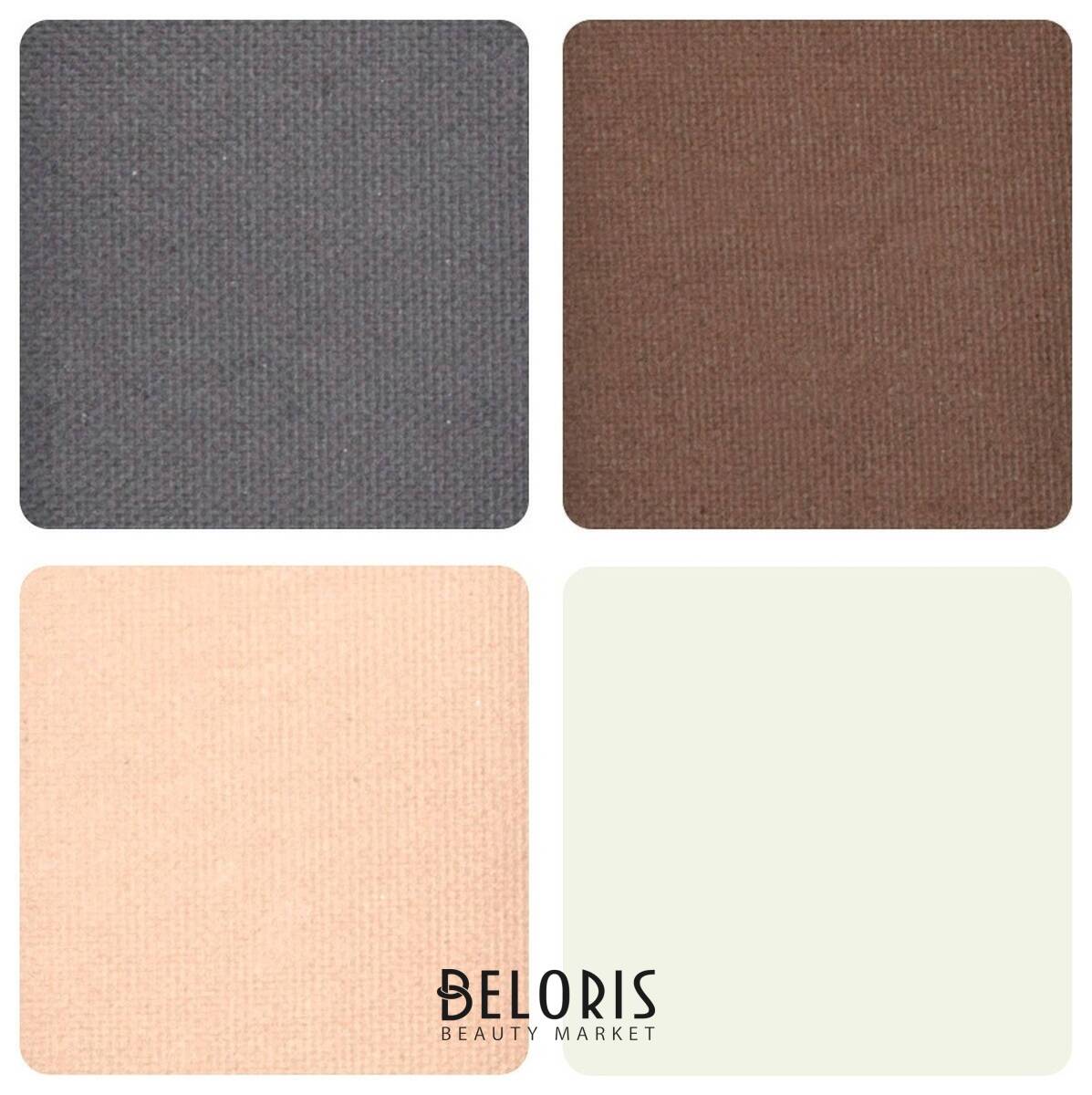 Набор теней для коррекции бровей содержит все для профессионального макияжа бровей: бесцветный воск, тени натурального оттенка, кисточка, аппликатор и щеточка.
