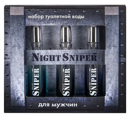 Набор для мужчин Night Sniper Представляем вам наши потрясающие наборы из трёх флаконов по 20 мл. Альтернатива полноразмерным флаконам. С мужским набором есть возможность выбирать парфюм под настроение. Наш набор включает в себя такие композиции как древесный аромат, свежеть леса, морской аромат. Наши мужские парфюмы самые стильные, популярные и продаваемые ароматы. Попробуйте мужской аромат и мы уверены вы влюбитесь в эти духи. Стойкость аромата на теле до 36 часов. Если нанести наш мужской парфюм на одежду, то аромат держится очень долго. Нашего мужского набора, хватает на 3-4 месяца, в зависимости от частоты использования. Отлично подойдет в качестве подарка на любой праздник: Новый год, день рождения, 23 февраля, День Святого Валентина (14 февраля). Желаем вам приятных покупок и незабываемых ароматов с нашим мужским набором Night Sniper в котором 3 флакона на ваш вкус и настроение.
