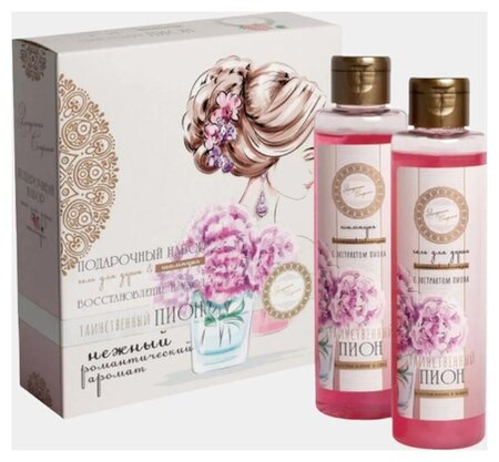 Подарочный набор ЗАГАДОЧНАЯ СКАРЛЕТ Таинственный пион состоит из шампуня для волос 250 мл и крем-геля для душа 250 мл.