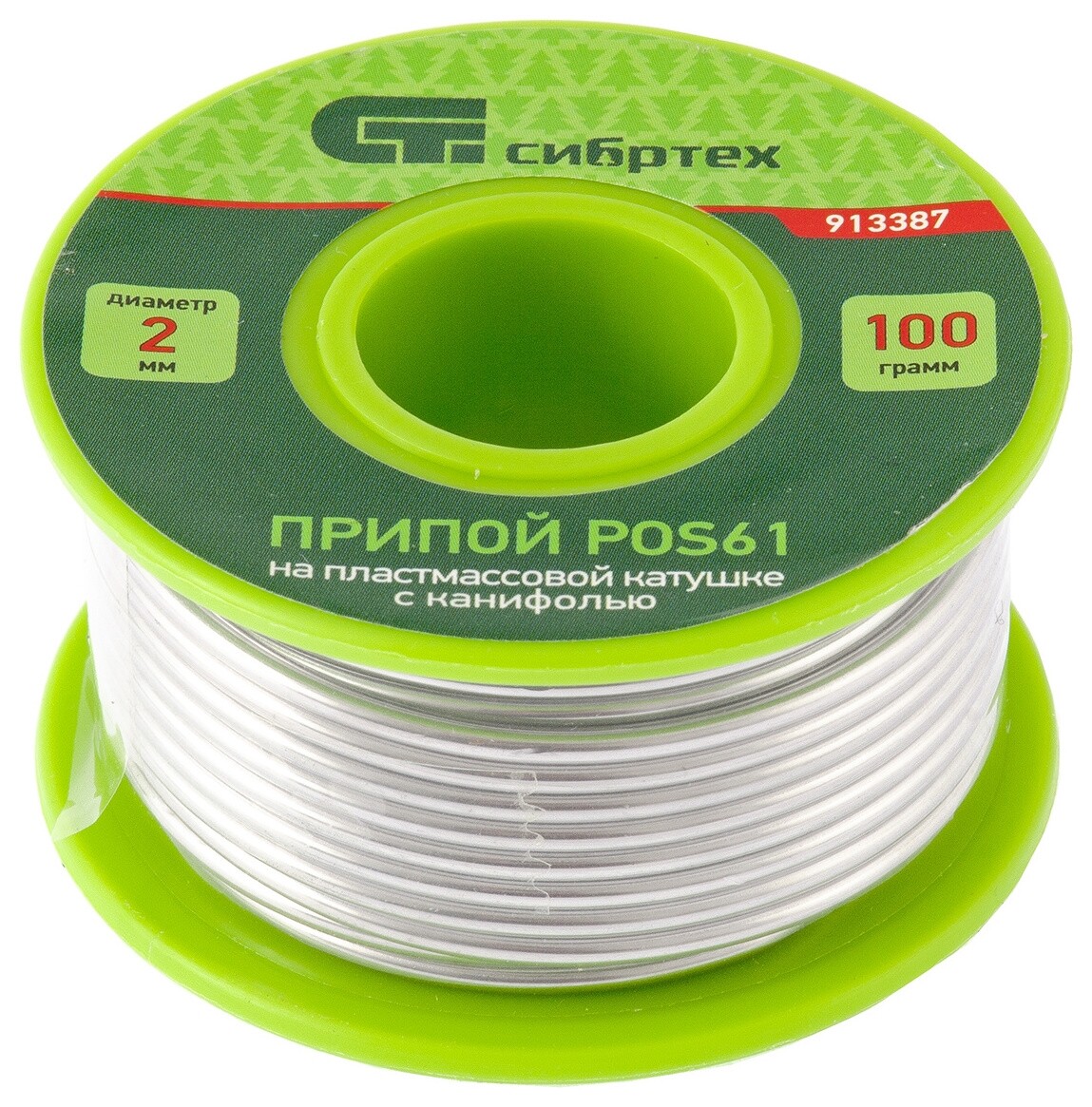 на Припой с канифолью, D 2 мм, 100 г, Pos61, на пластмассовой катушке Сибртех