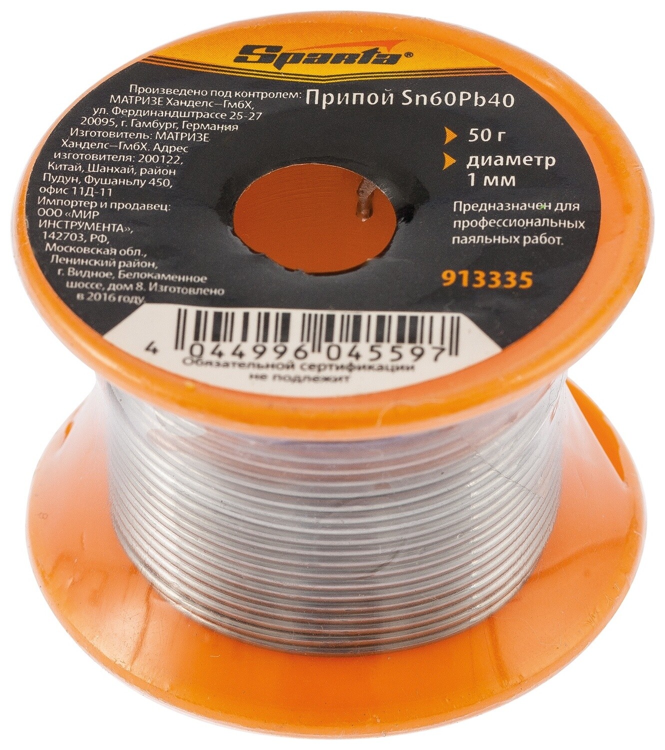 Отзывы на Припой Sn60pb40, D 1 мм, 50 г, на пластмассовой катушке Sparta