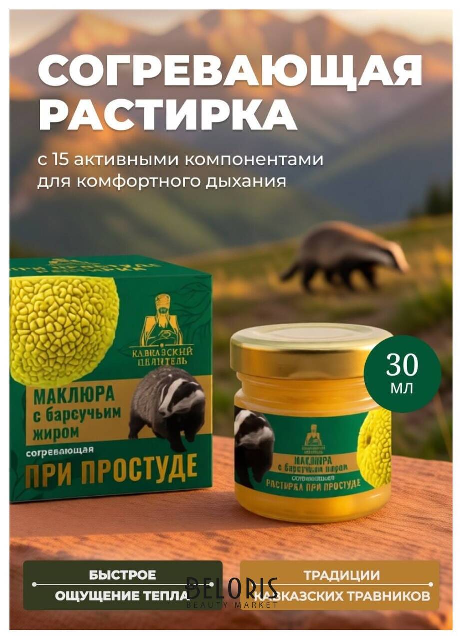 Кавказский целитель Растирка с маклюрой и барсучьим жиром, стекло