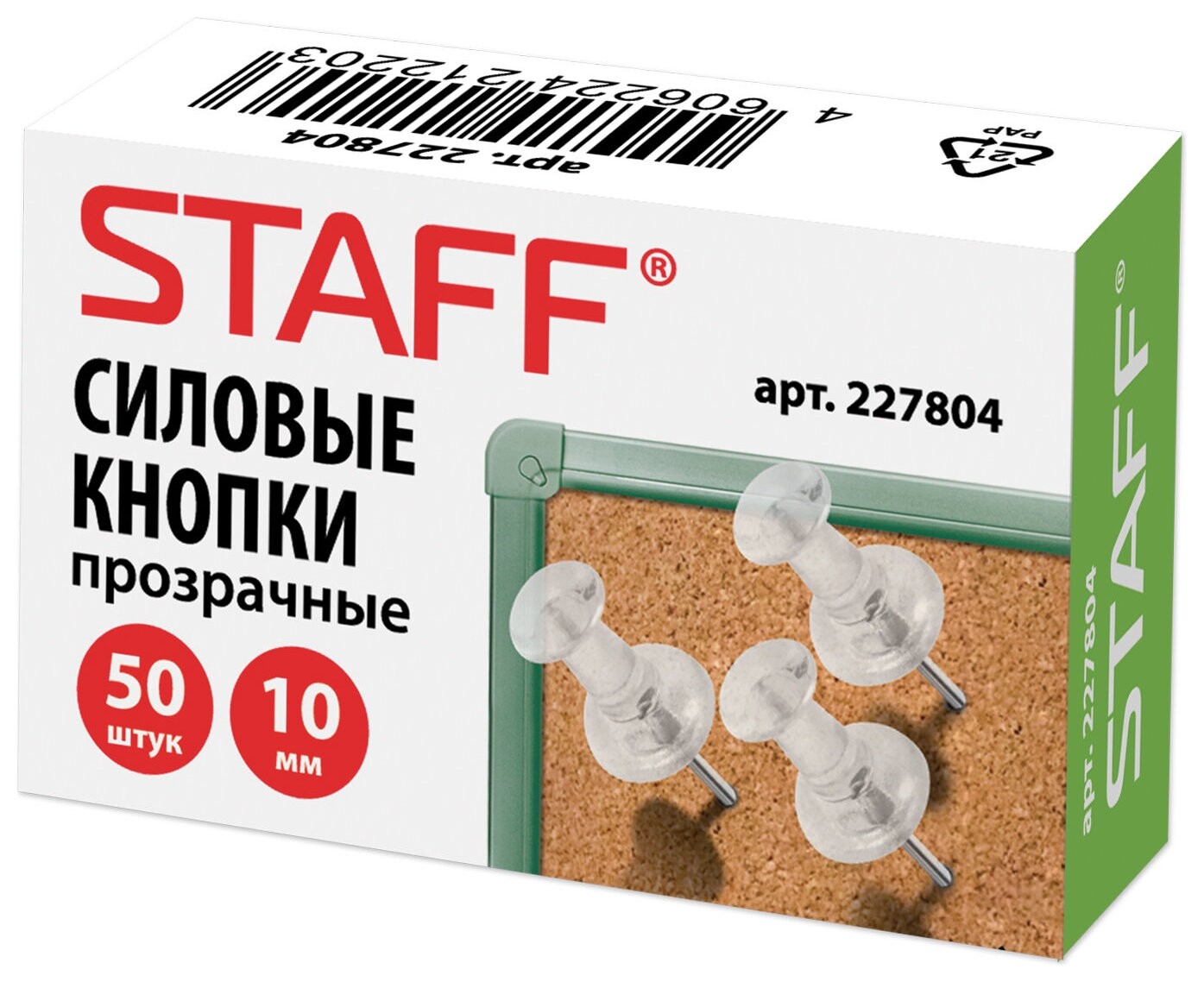 Отзывы на Силовые кнопки-гвоздики прозрачные Staff, 50 шт., в картонной коробке Staff