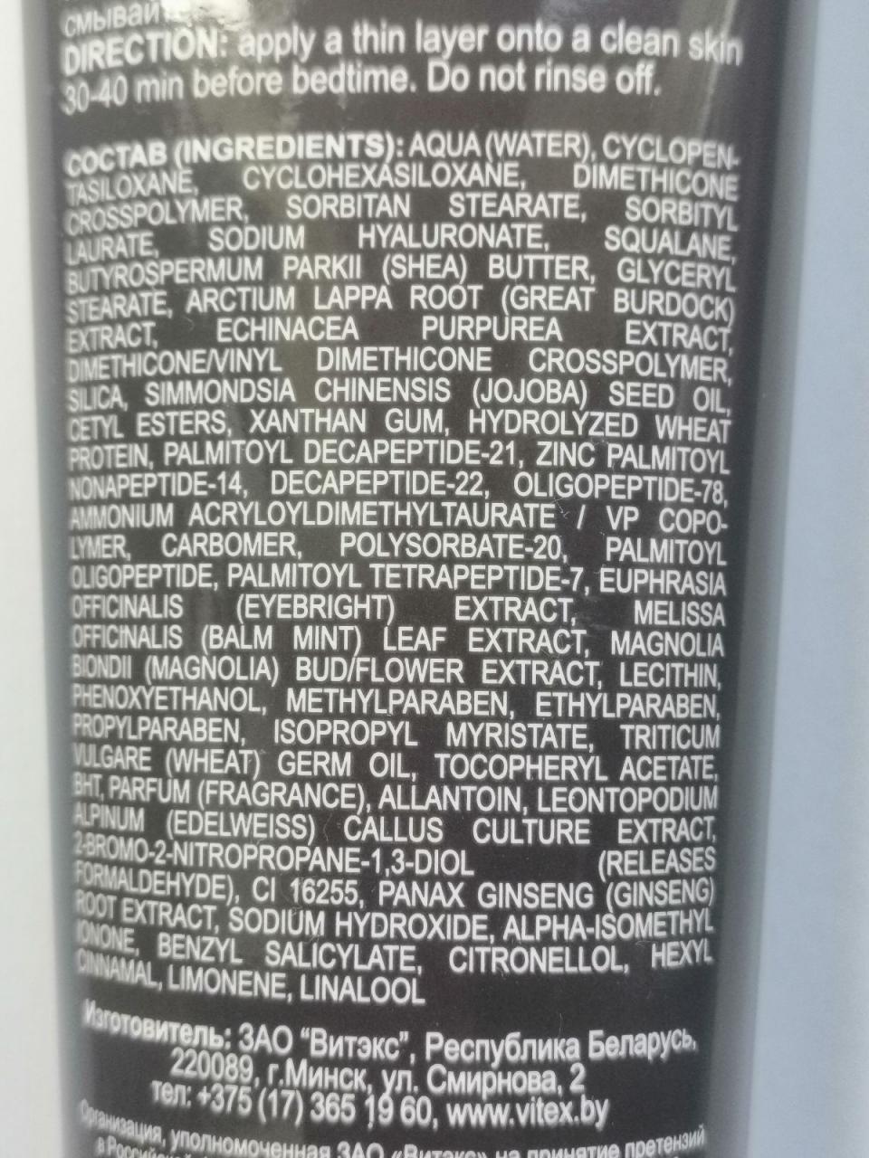 Нанесите крем-маску за 30-40 минут до сна тонким слоем на щеки, лоб и подбородок. Избегайте попадания в глаза. Не смывайте!