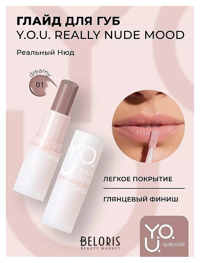 Relouis Тон 01 Dreamy. Глайд для губ Y.O.U. Really Nude Mood Белорусская косметика