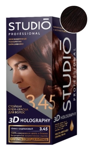 Studio Professional Тон 3.45 Темно-каштановый. Крем-краска для волос стойкая 3D Holography
