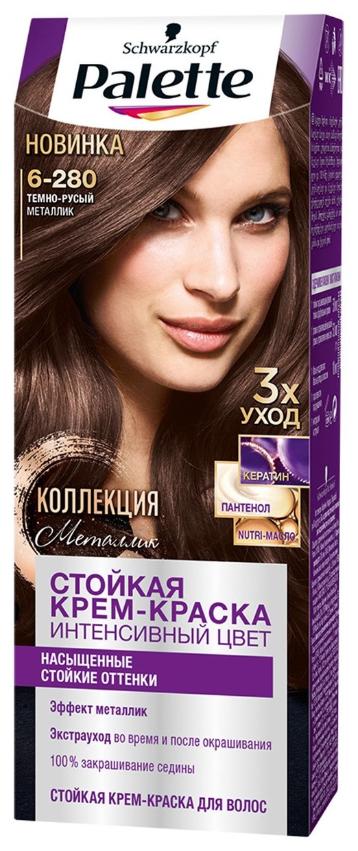 Palette Тон 6-280 Темно-русый металлик. Стойкая крем-краска Интенсивный цвет