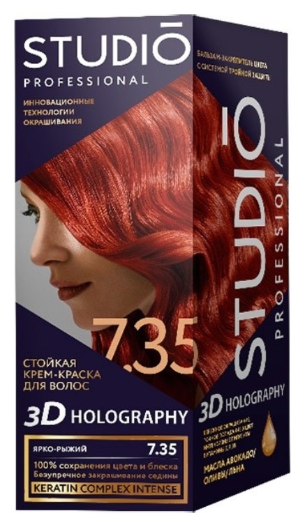 Studio Professional Тон 7.35 Ярко-рыжий. Крем-краска для волос стойкая 3D Holography