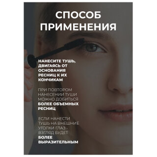 - Принципиально новый подход визуально привычной силиконовой щеточки -бочонка в том, как молниеносно и сверхточно мелкие щетинки обнаруживают и формируют каждую ресничку, «наращивая» триумфальный объем с первого нанесения.