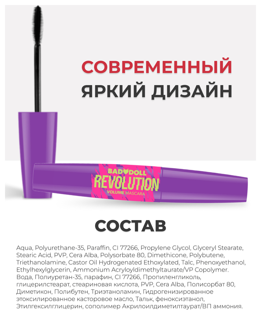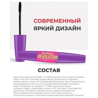 - Тушь для ресниц Revolution получилась более смелой и дерзкой представительницей коллекции Bad Doll, которая провоцирует выходить за рамки обыденности для большего самовыражения!