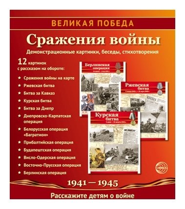 Комплект "Сражения войны" посвящен основным битвам Великой Отечественной войны (1941-1945), в которых советские войска проявили героизм и мужество, приблизив долгожданную победу над немецко-фашистскими захватчиками.