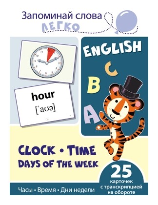 Для детей, желающих овладеть английским языком на начальном этапе, издательство «ТЦ Сфера» представляет новую серию «Запоминай слова легко». Комплект состоит из 25 тематических карточек, в каждой из них на лицевой стороне представлен цветной рисунок, на обратной — написание слова на английском языке, транскрипция и уровень сложности (всего их 4, каждый отмечен римской цифрой). Комплект «Часы, время, дни недели» удобно составлен для ребенка: ему достаточно рассмотреть цветные рисунки, чтобы запомнить написание связанных с ними слов.