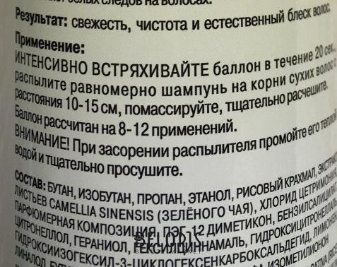 перепробовала разные шампуни, этот не самый плохой , распылять лучше не слишком близко к корням и не интенсивно, тогда не останется белых следом, подождать пару минут , потом расчесать и уложить волосы